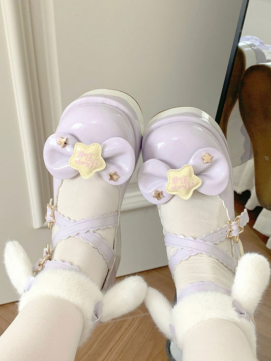 Strap with Pink Lolita - PU Detachable Sweet Puppy Mary Plush Ear Platform Janes Velcro Starry Ankle Theme