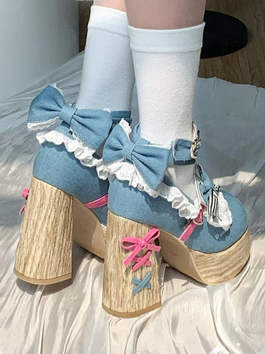 Blue Platforms Sweet Details Decorated Spoon Lolita Bowknot