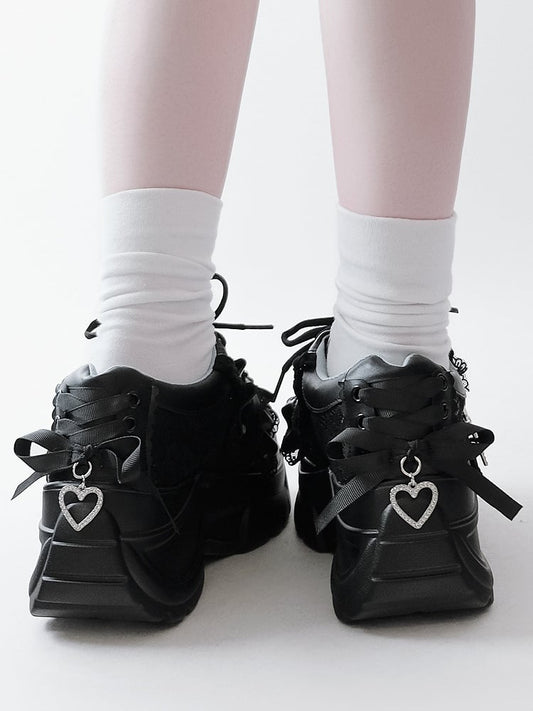 Lacing Crystal Kei Heart Back Jirai Shoes - Platform White