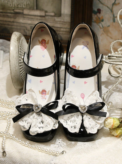 Klassische schwarze Lolita-High-Mary-Heels mit Schleife