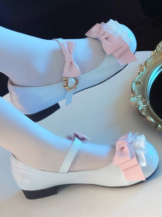 Lolita Shoes Deep Toe Heel Sweet Round 2cm/4cm Mary Accents with Pink Jane Bow