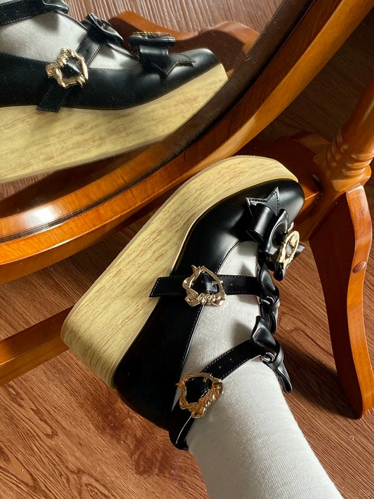 Lolita Shoes with Hime Decor Black PU Sole 6cm Bow Platform