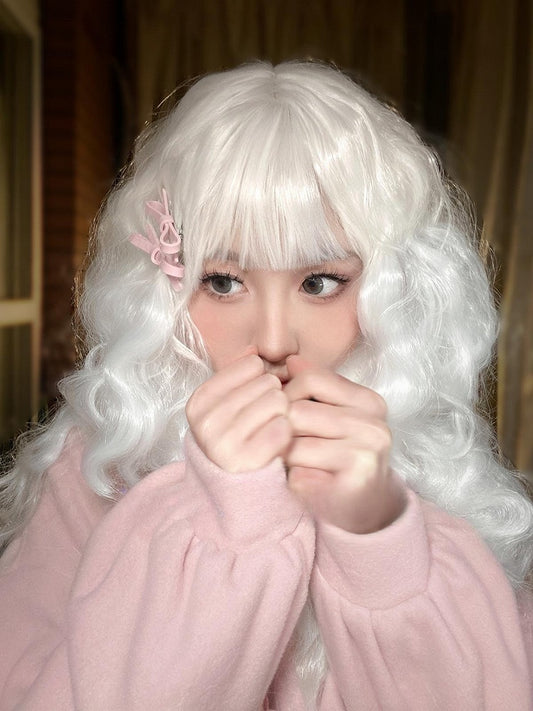 Weiße lange lockige Perücke mit vollem Pony