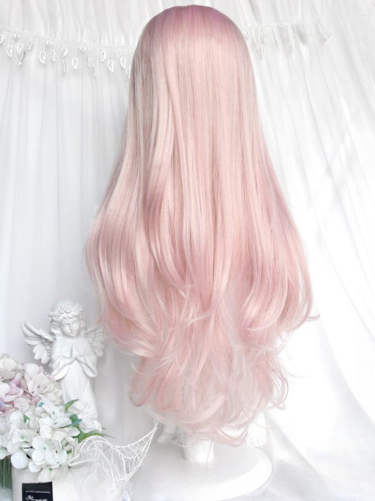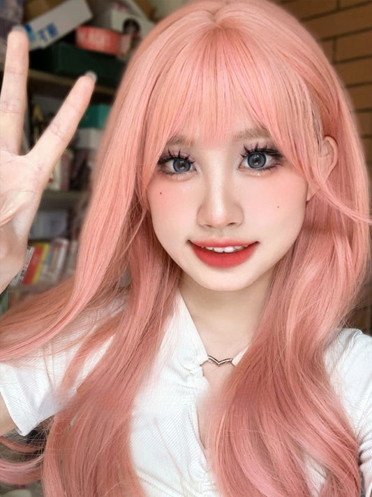 Mit 70 cm Perücke, rosa Pony, gewellte Sakura-Länge