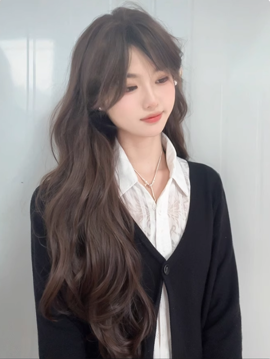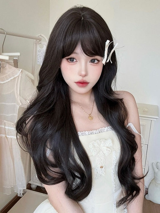 Tea Wig Bangs Black Wavy Long Curtain