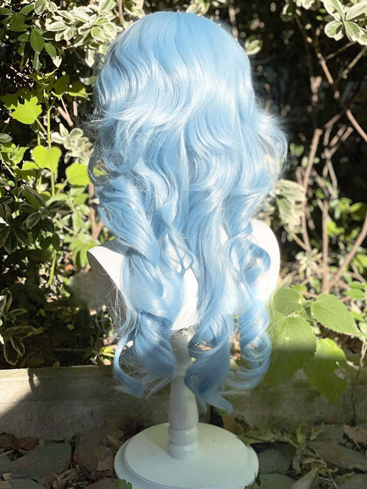 Mit Air Perücke 70CM Länge Pony Wellig Blau