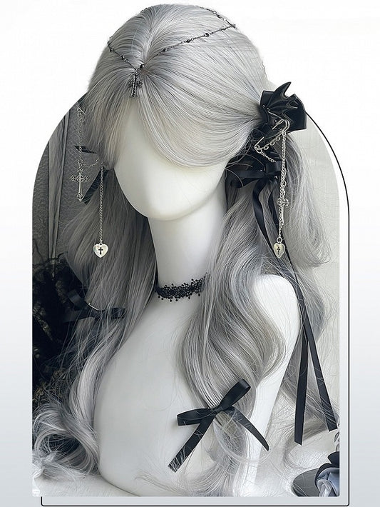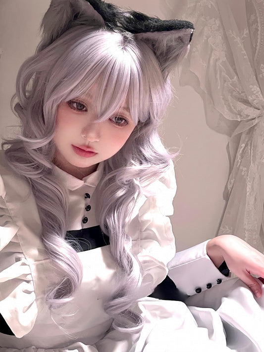 Gewellter Pony Grau Silber 65CM mit Länge Vorhangperücke