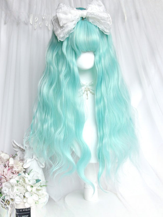 Gewellte 65CM Perücke Grün mit Pony in voller Länge