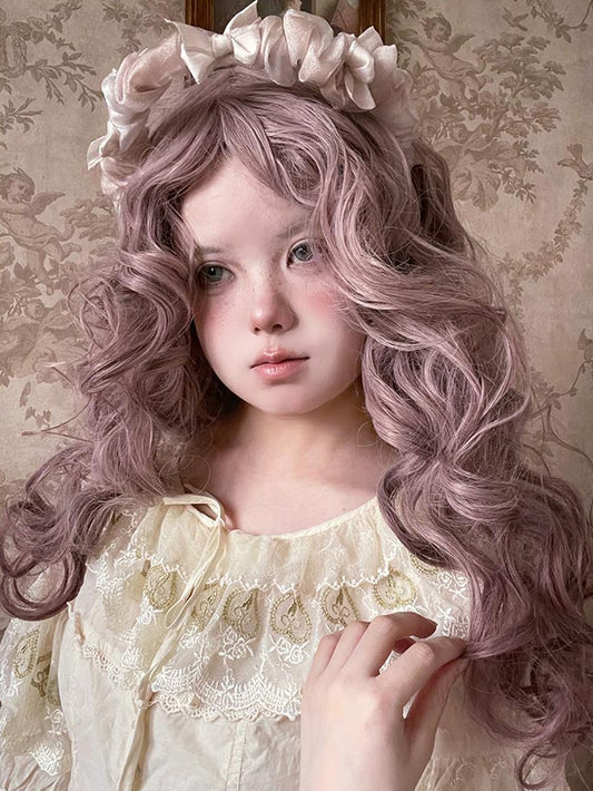 Perücke gewellt 48 cm lila Länge staubig