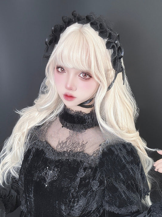 Perücke 65CM Voller gewellter Pony Blond Mit Länge