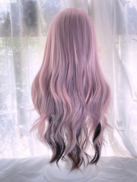 Rosa schwarze Perücke und gewellte Länge Air 65CM Highlight mit Pony