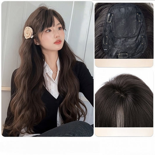 Lange Luft mit Pony braune Perücken gewellt 65-70cm
