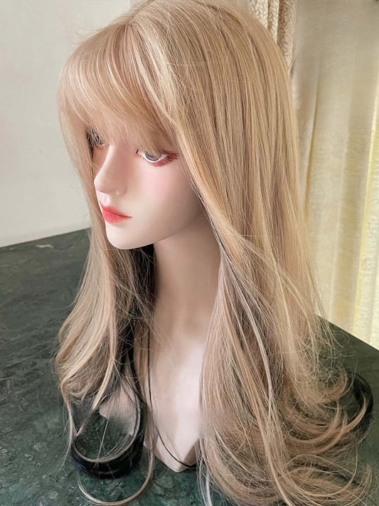Hellbraune, lange, gewellte Ponyfrisur mit Perücke, 60–65 cm