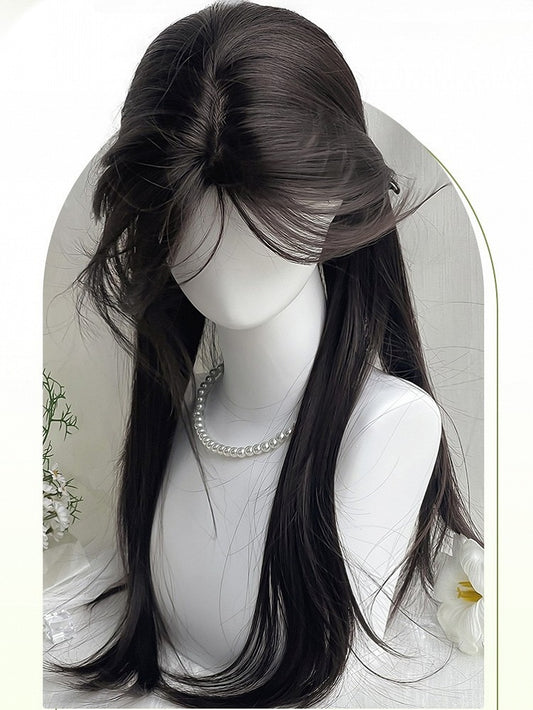 Natural Dark Curtain Long Wig Wavy Bangs Grey