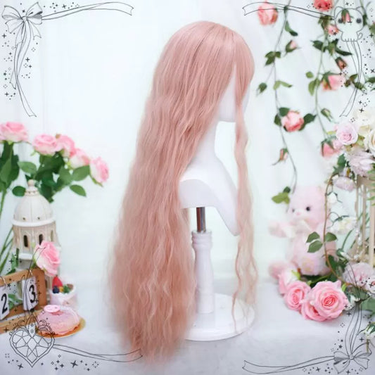 Long 2 With Bangs 70-75CM Options Wig Wavy Cherry Pink