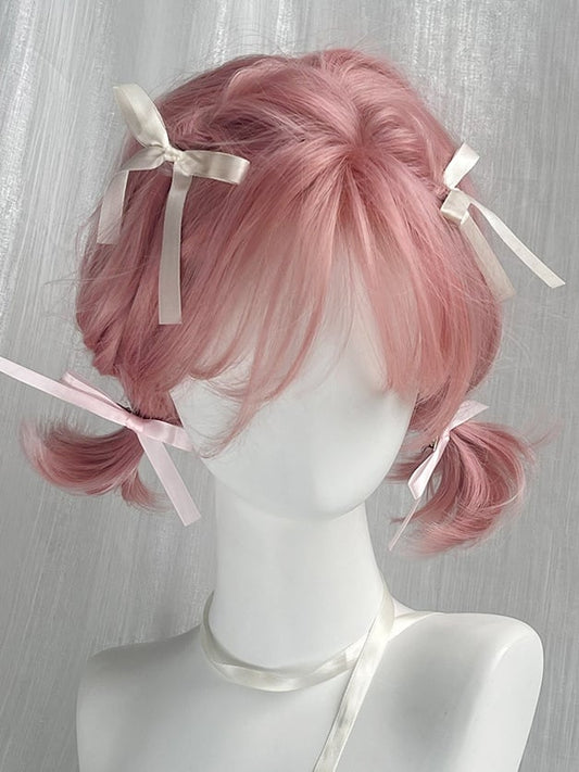 Rosa Bob-Perücke mit Pony und doppelten langen/kurzen Pferdeschwanz-Krallenclips