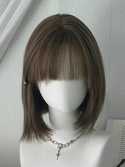 Hellbraune, kurze, glatte Kunsthaarperücke mit Pony
