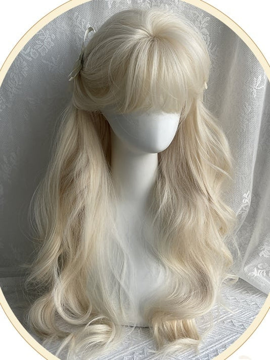 Hellblonde lange gewellte Perücke mit vollem Pony