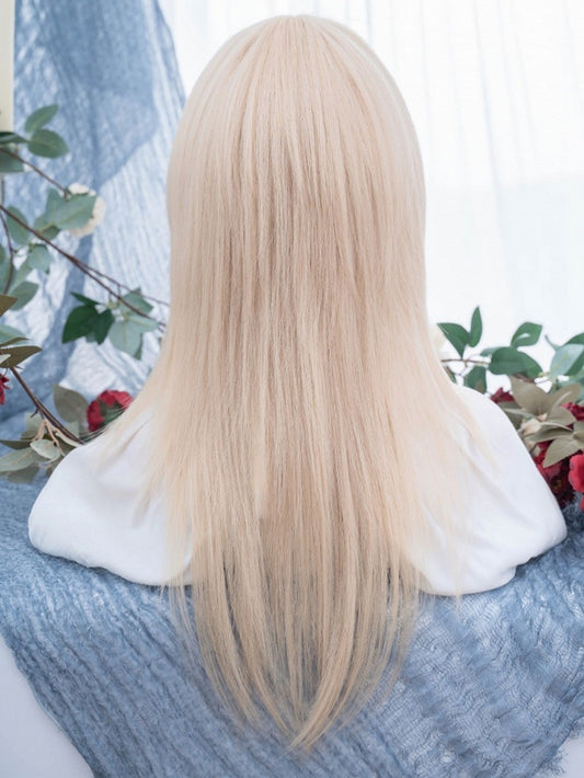 Hellblonde lange glatte Kunsthaarperücke mit Pony