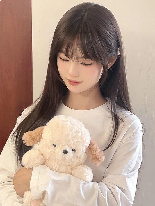 Dunkle Perücke 60CM Luftlänge Braun mit Pony Glatt