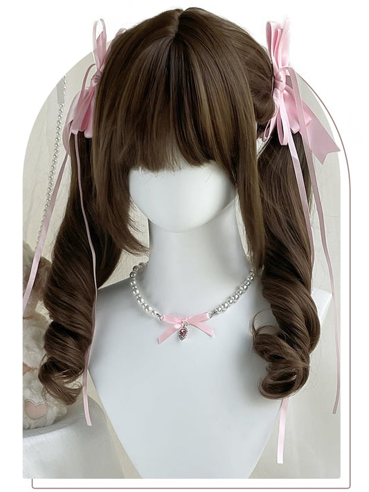 Claw Two Perücken mit Pony + Länge rosa Schulter gewellte Pferdeschwänze