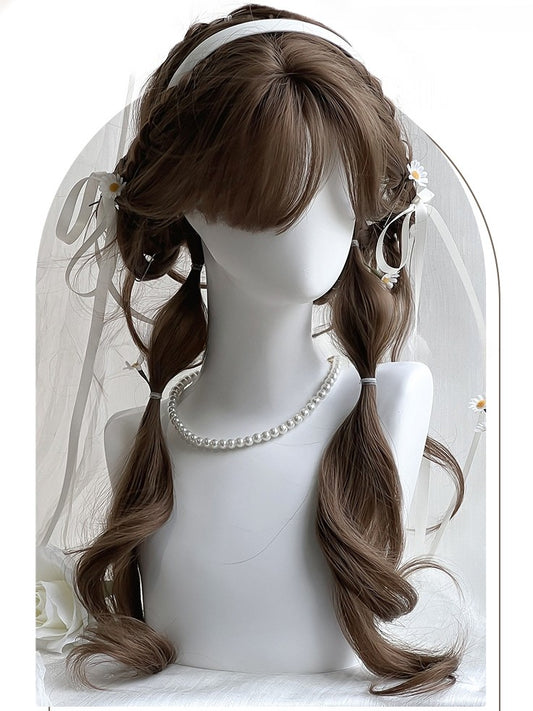 Braune gewellte Air-Perücke mit Pony, Länge 70 cm
