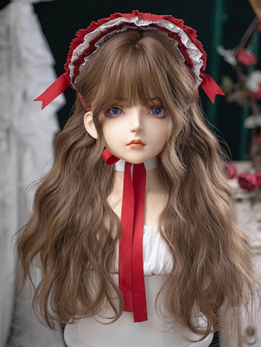 Brustlänge Braune Luft Unter Gewelltem Pony 64CM Mit Perücke