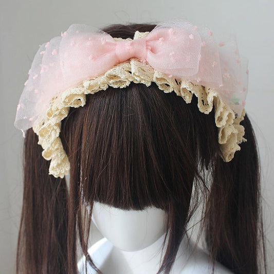 Rosafarbenes Haarband mit Schleife und Polka-Dot-Muster aus Spitze