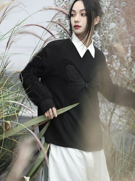 Sweatshirt Design Kurz Schmetterling Strappy Schwarz