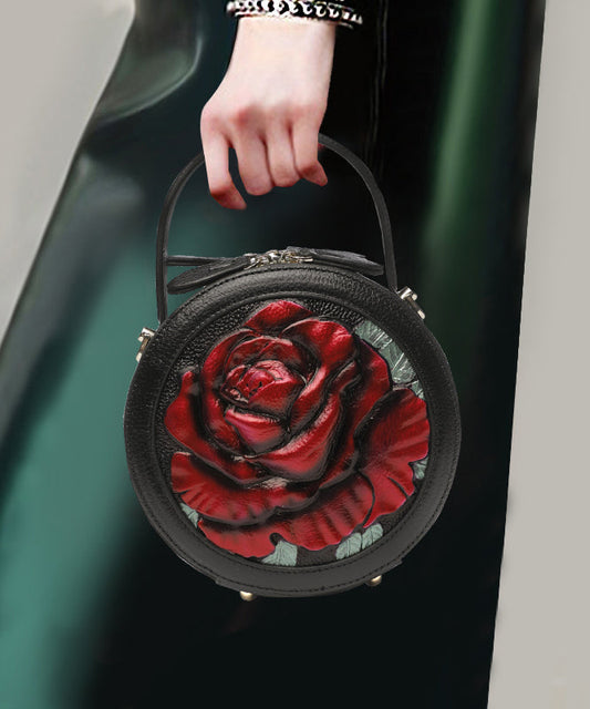 Lila geprägte ethnische Tasche im neuen Stil mit Pfingstrosen, rund 2025