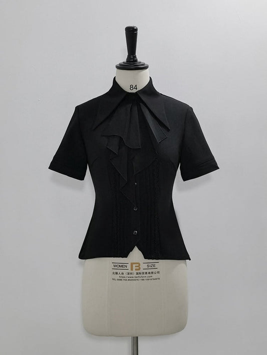 Jabot Lolita Kragen Schwarz Foldover Kurze Mode Ärmel Shirt Spitz Ouji