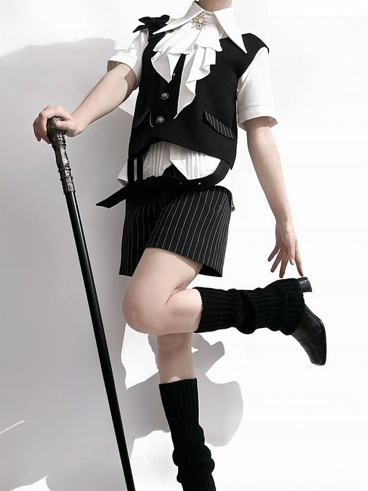 Lolita Ouji All Sleeves Tail Set Fashion Long Bell - Hemd + Weste Schwarz Gothic
