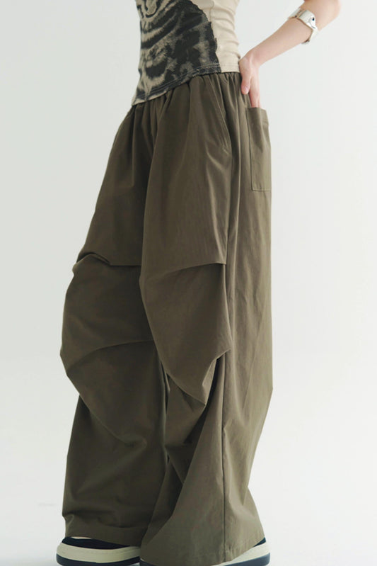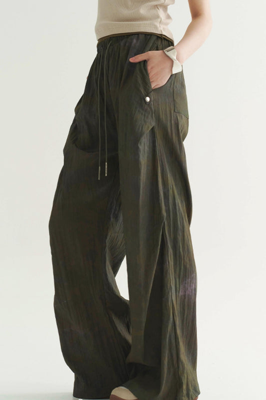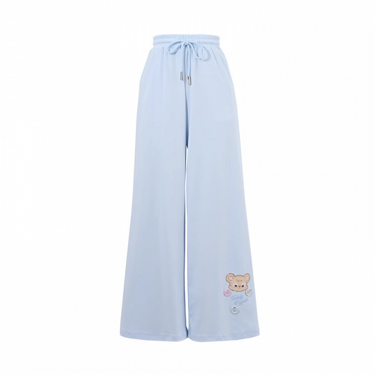 Weite Freizeithose mit blauem Kordelzug in der Taille und Bärendruck-Manschetten
