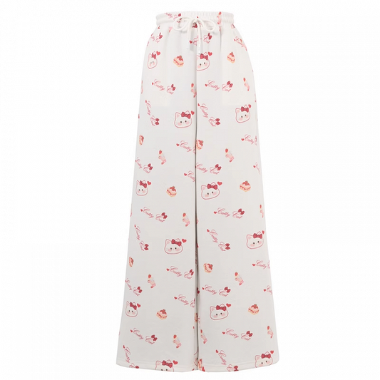 mit Charm Weiß Allover Paw Print Kordelzug Bündchen Weite Bein Hose Gratis