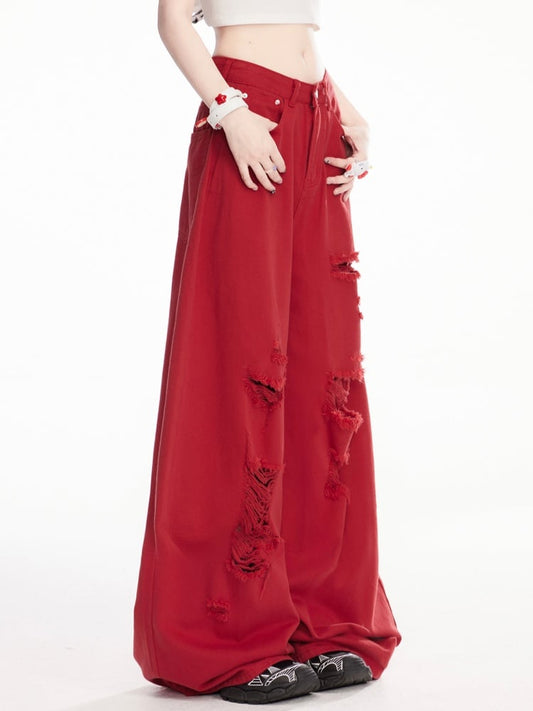 Weite Jeans Wasteland Apricot Niedrige Taille Distressed Löcher Punk