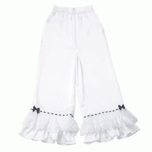 Weiße Freizeithose mit elastischer Taille und Schleife, gestuften Rüschenbündchen