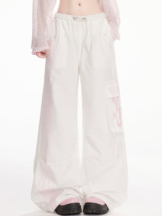Cargohose mit weitem Bein und seitlichen Streifen und Kordelzug in der Taille Schwarz/Weiß