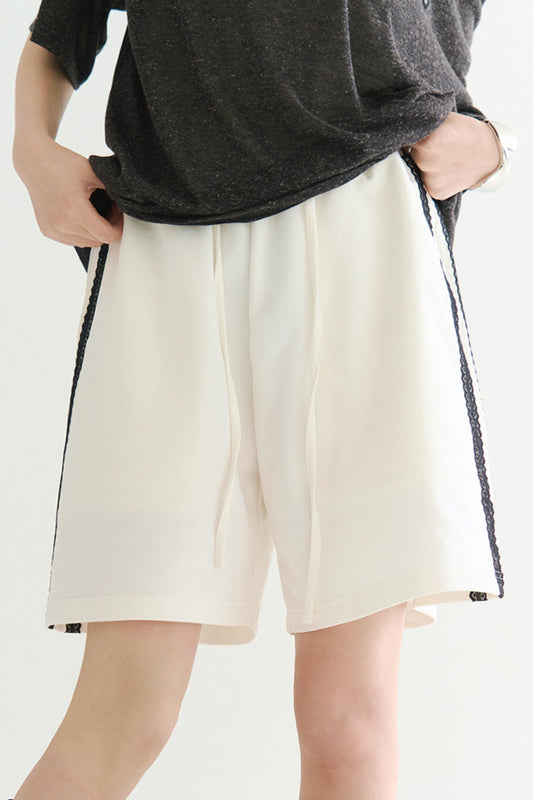 Weiße Freizeithose mit weitem Bein und Kordelzug in der Taille