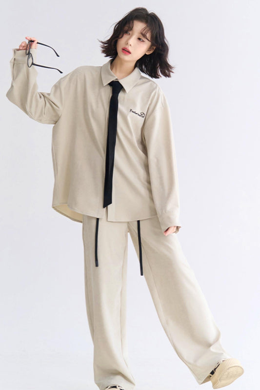 - Muse: Fallen Sie auf weite, schlichte Anzüge mit langen Ärmeln und lockeren, lässigen Hosenhemden für Damen und Frühlings-Gravity-Kleidung herein