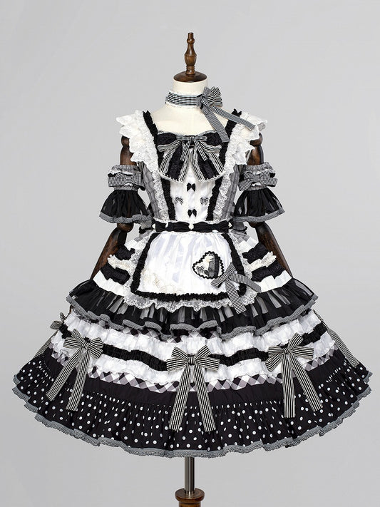Lolita Tiered Oreo Set JSK Volle Akzente Weiß Kuchen Bogen Rock Süße Schwarz und
