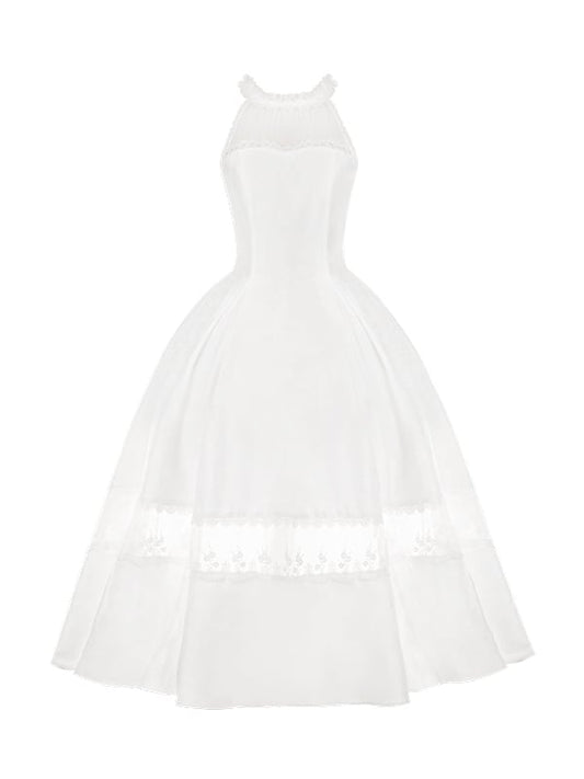 Spitze Jacquard Illusion Alle Rosette Neckholder Weiß Ballkleid Panels Stoff
