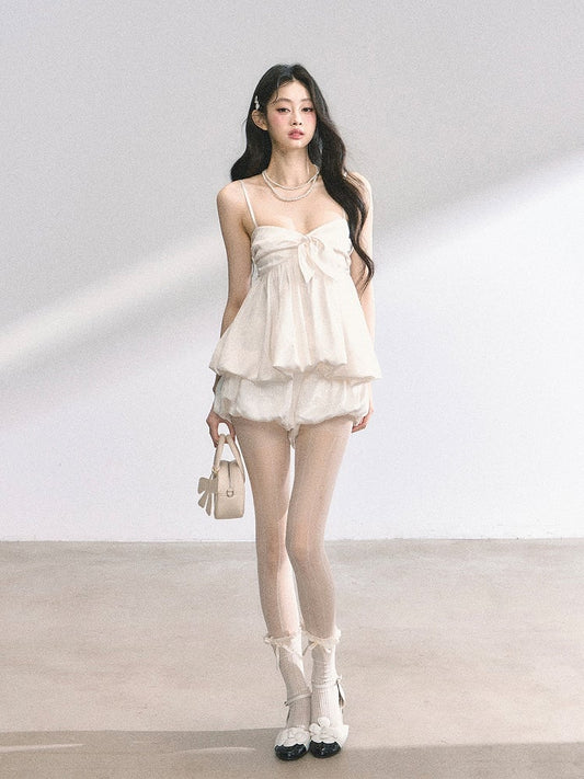 Set aus rosa/hellblauen Shorts mit Schleife hinten, Matrosenkragen, selbstbindendem Minikleid + gerüschtem hellem Saum, Jirai Kei