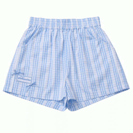 Blau-weiße Shorts mit elastischer Taille und Karomuster
