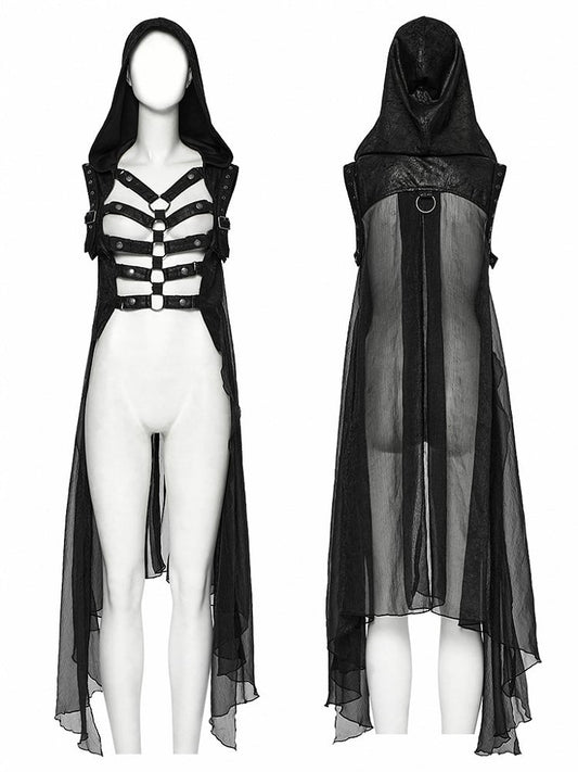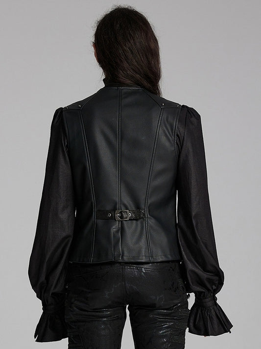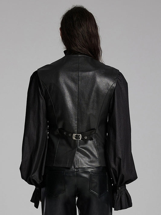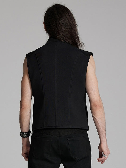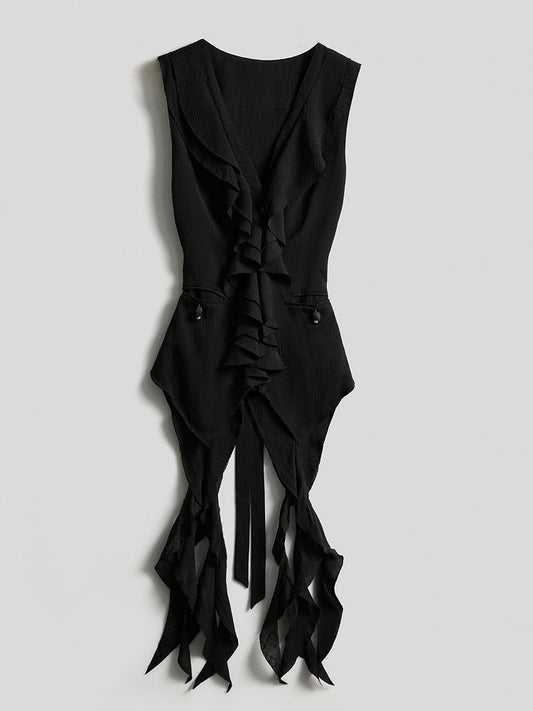 Ruffle Multi-Layer Sleeveless Black Paneled Vest Urban Goth