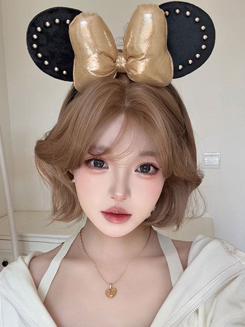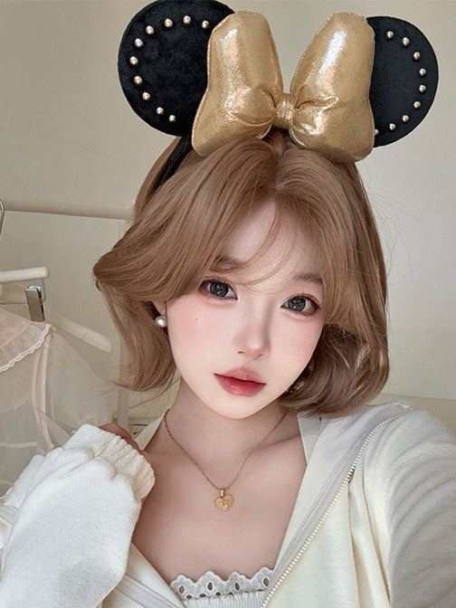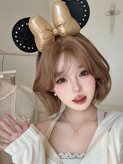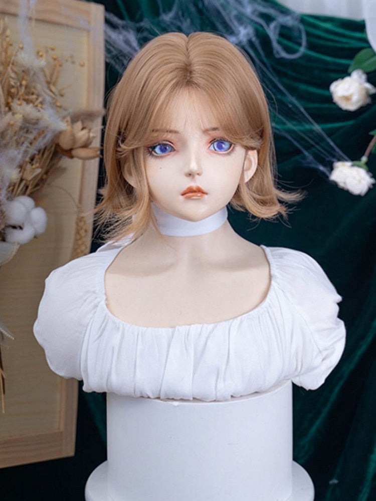30CM Vorhangperücke, kurz, Champagner, mit gewelltem Pony