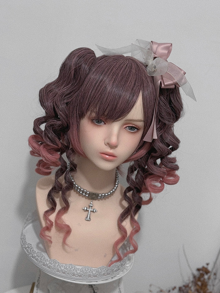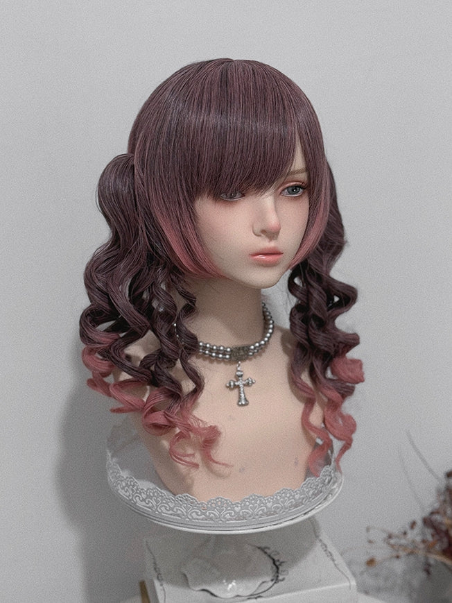 Rosa Ombre 48 cm lange Perücke mit Air Pony + doppelten 30 cm langen römischen lockigen Pferdeschwanz-Krallenclips