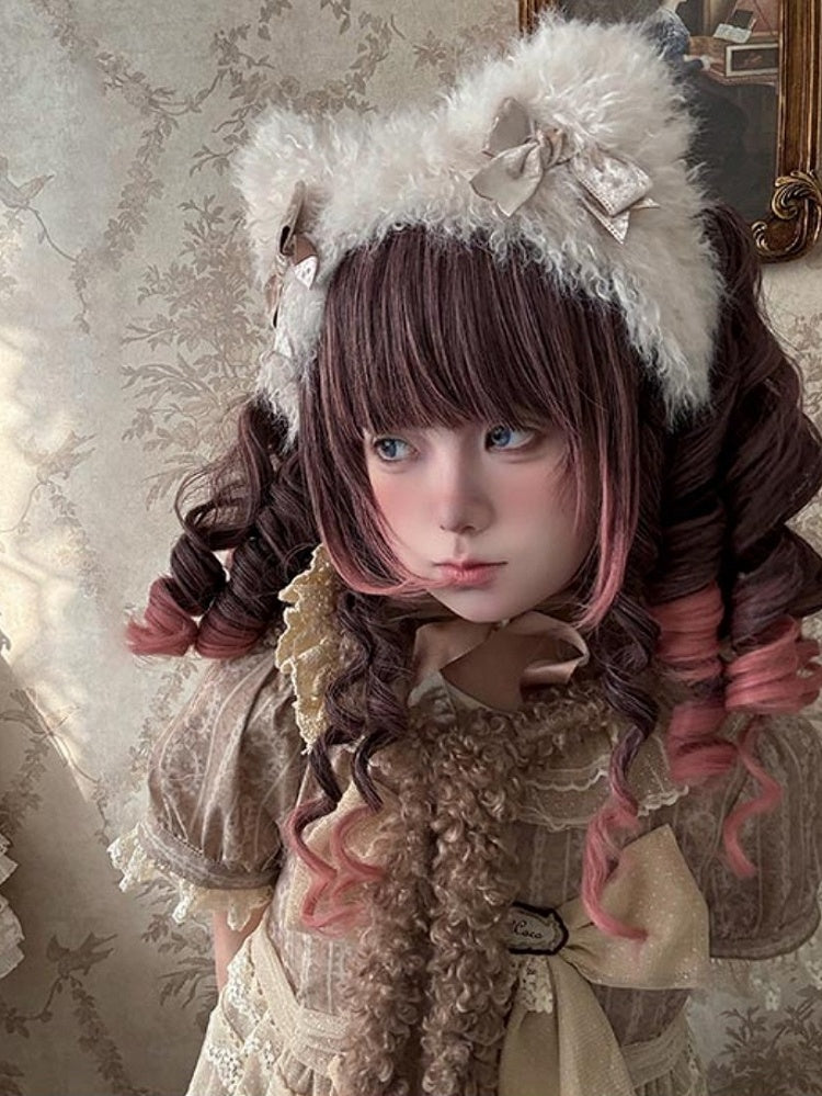 Weiß-rosa Lolita-Haube-Halsband