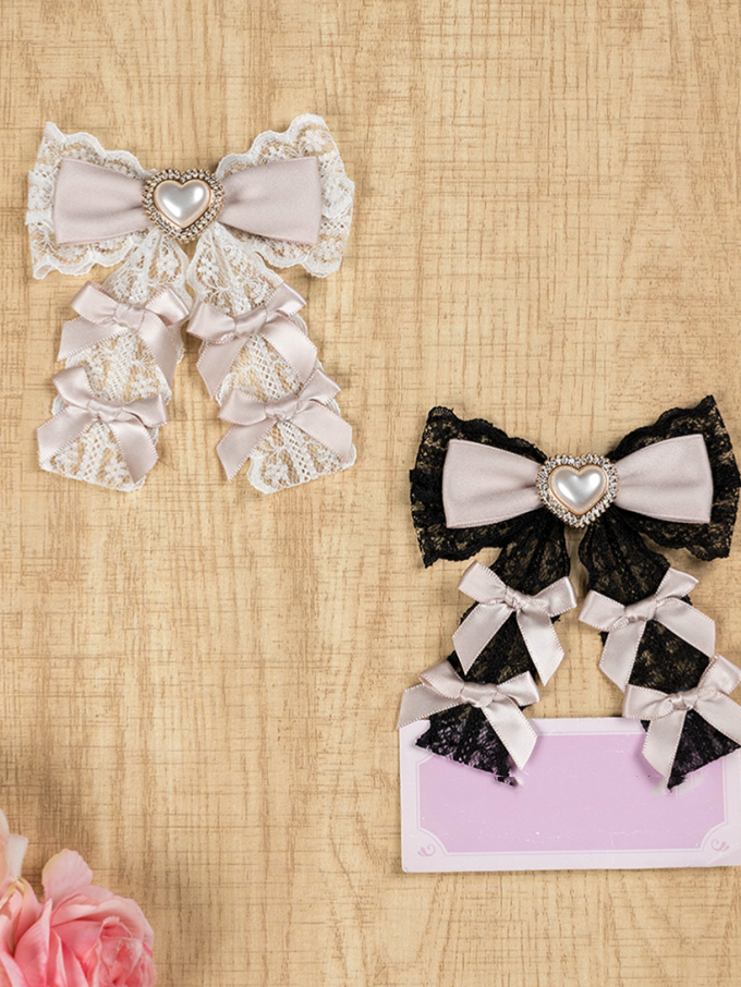 4 Farben Jirai Kei Schleifen Herz Spitze Haarspange