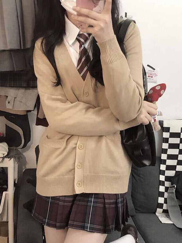 7 Optionen Farbe Strickjacke Gestrickter V-Ausschnitt