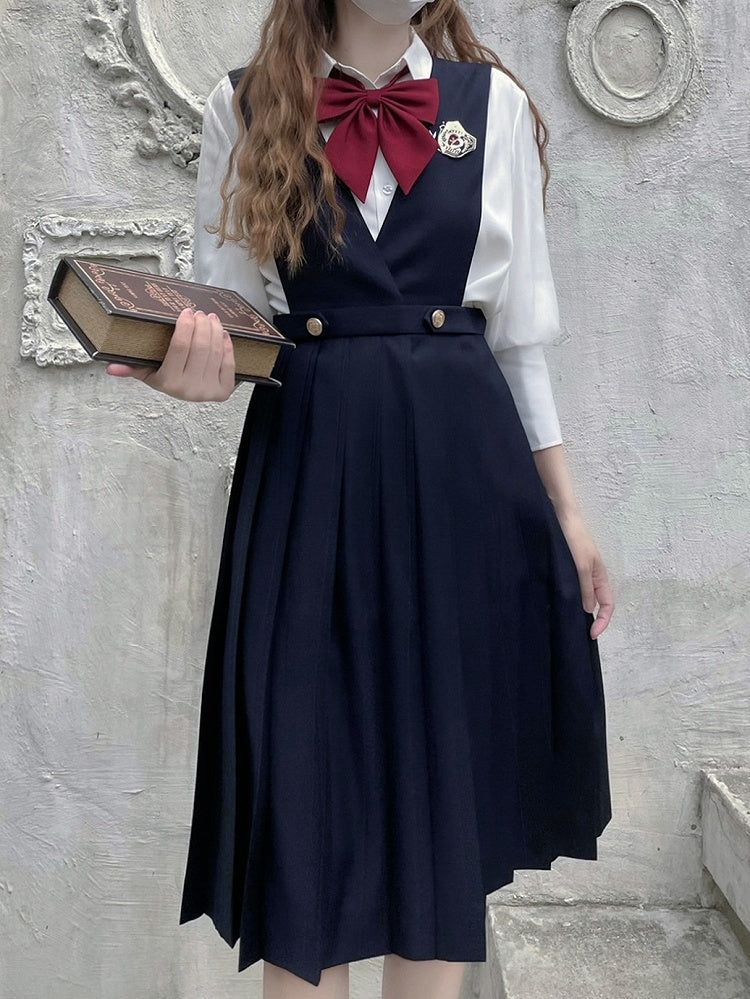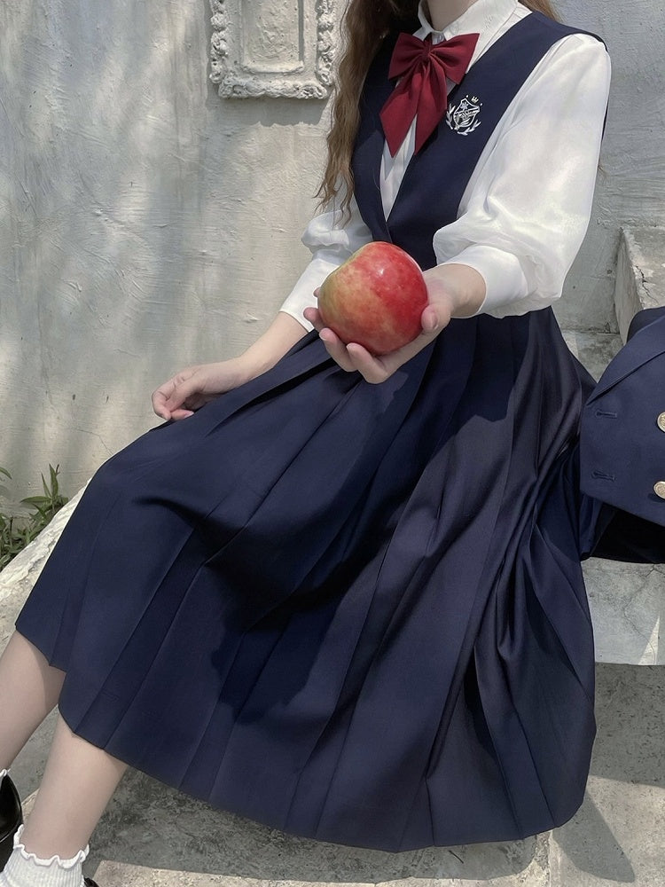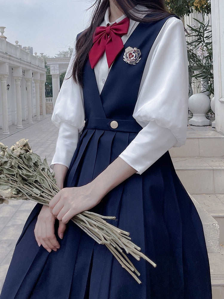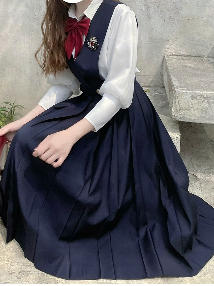 Blau-weißes Old School Lolita Fashion Kleid mit Schleife und Details, JSK-Set